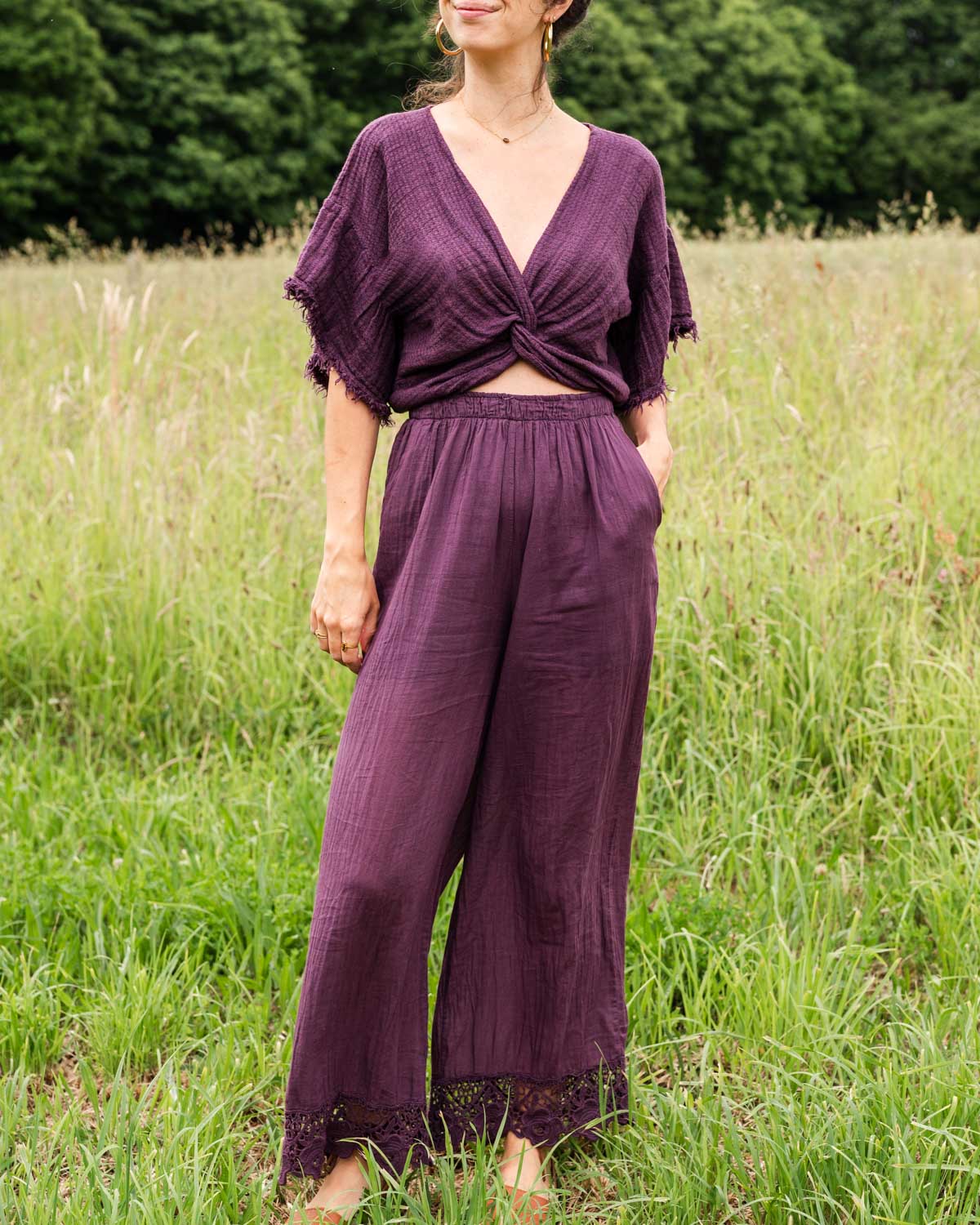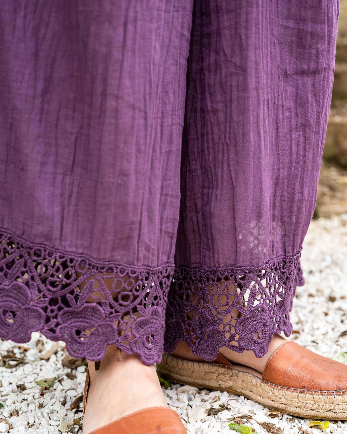 Boho Katoenen Broek “Aya” – Paars– Garçonne – Gehaakte Rand