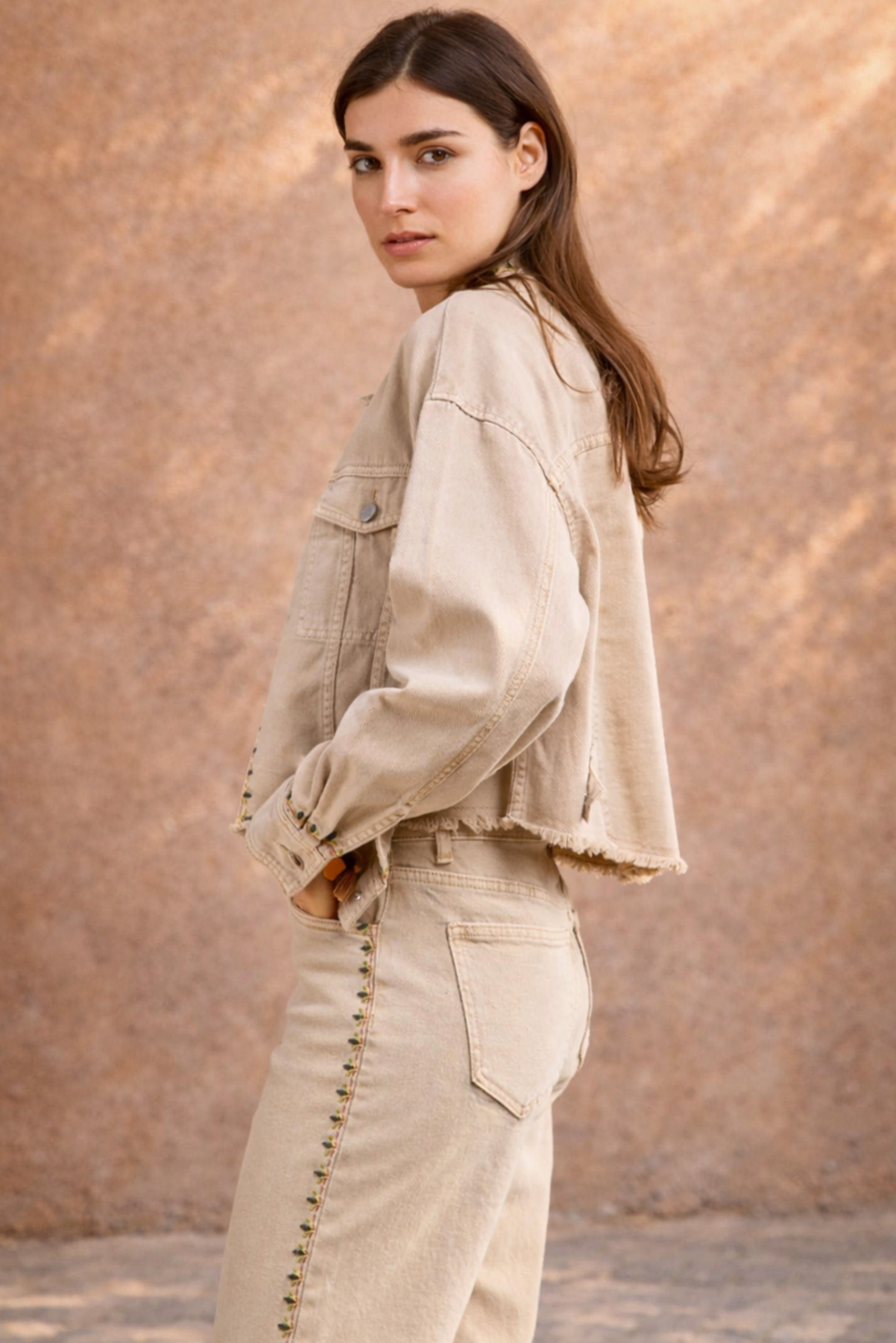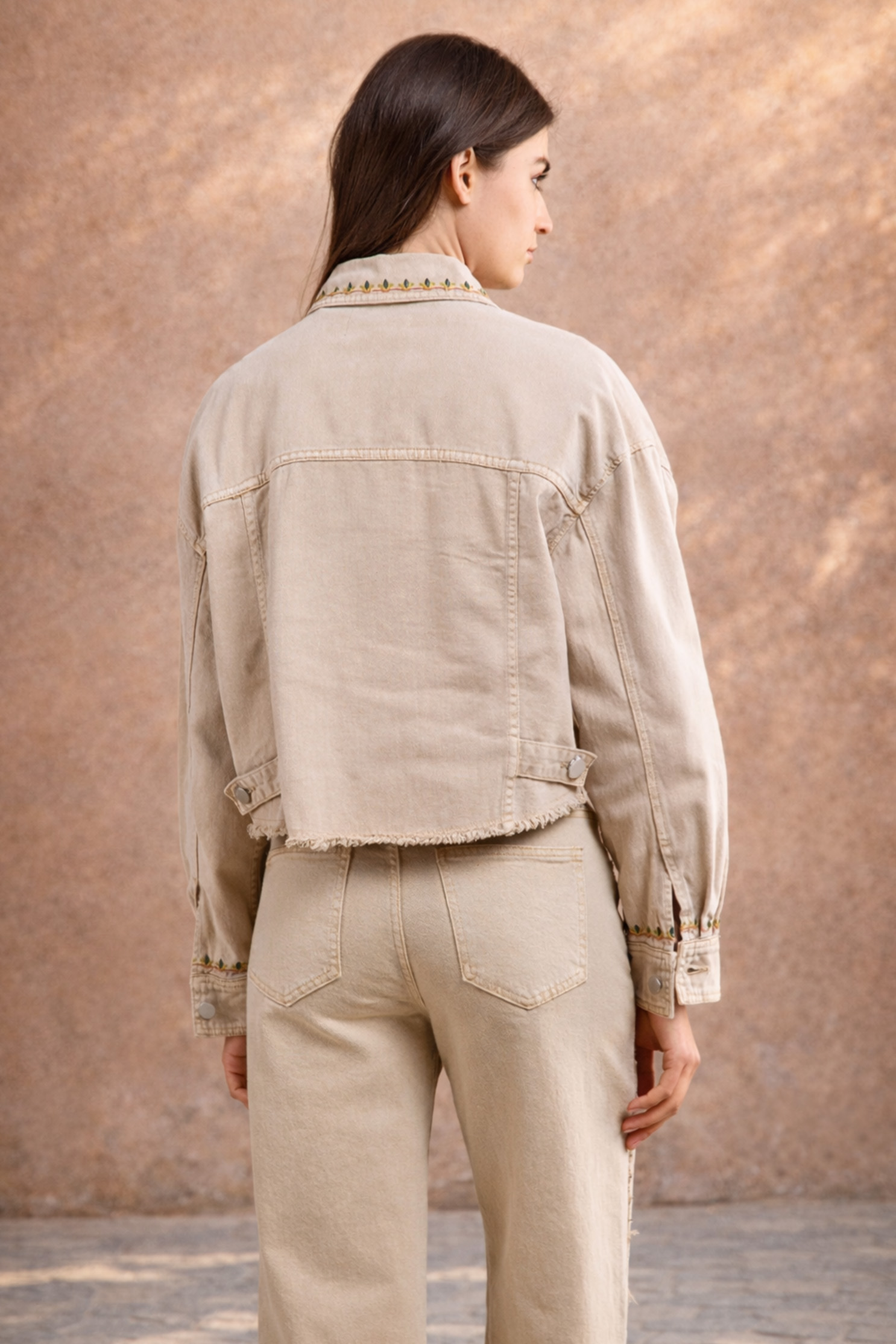 Het Amira jasje is een lichtgewicht katoenen jeansjasje, ideaal voor het lente- en zomerseizoen. Het jasje heeft subtiele geborduurd details en is perfect te combineren met de bijpassende Amira broek voor een elegante, boho-chique look.