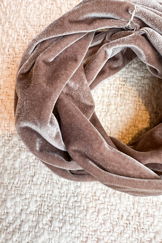 Boho Fluwelen Haarband “Noor” – Taupe – Handgemaakt