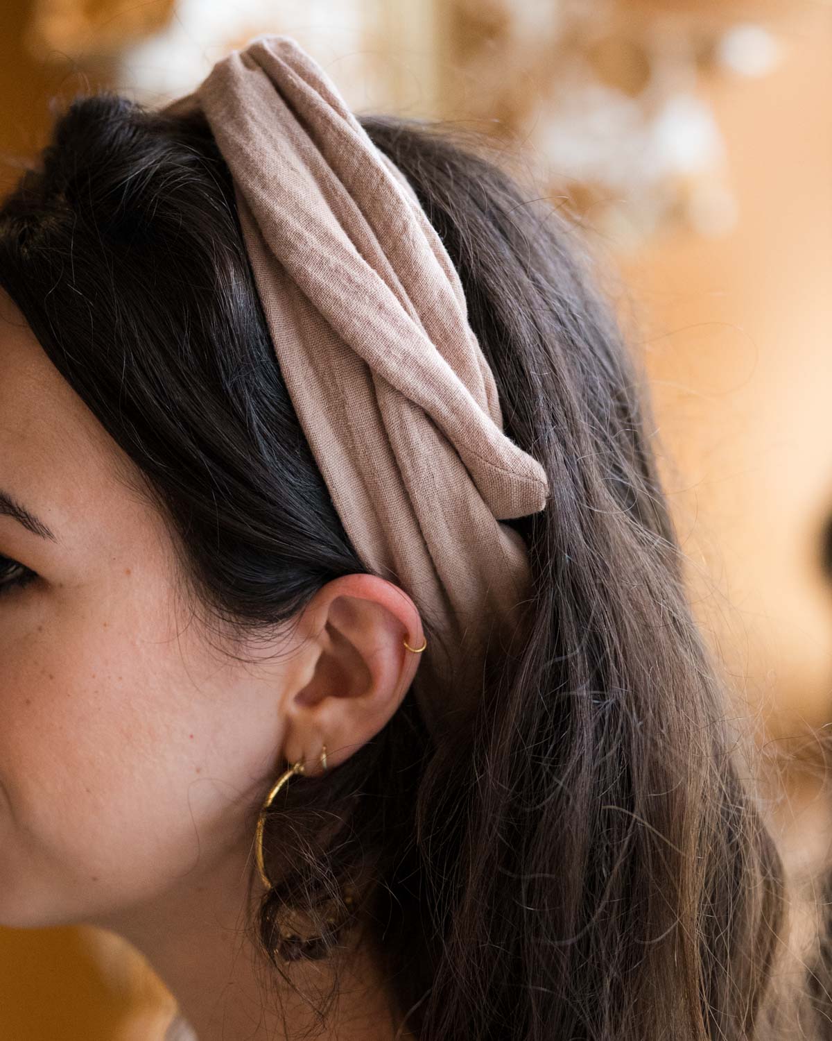 De Shea haarband is een handgemaakt accessoire uit het atelier van La La Bella. Gemaakt van zacht hydrofiel katoen in een stijlvolle taupekleur, en voorzien van verwerkt ijzerdraad waarmee je de band gemakkelijk in model brengt en stevig draagt.