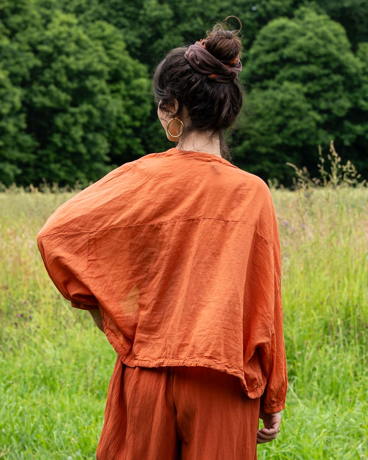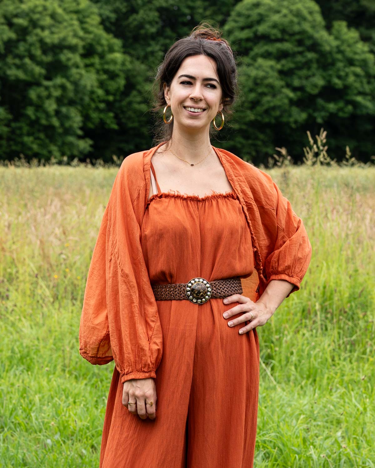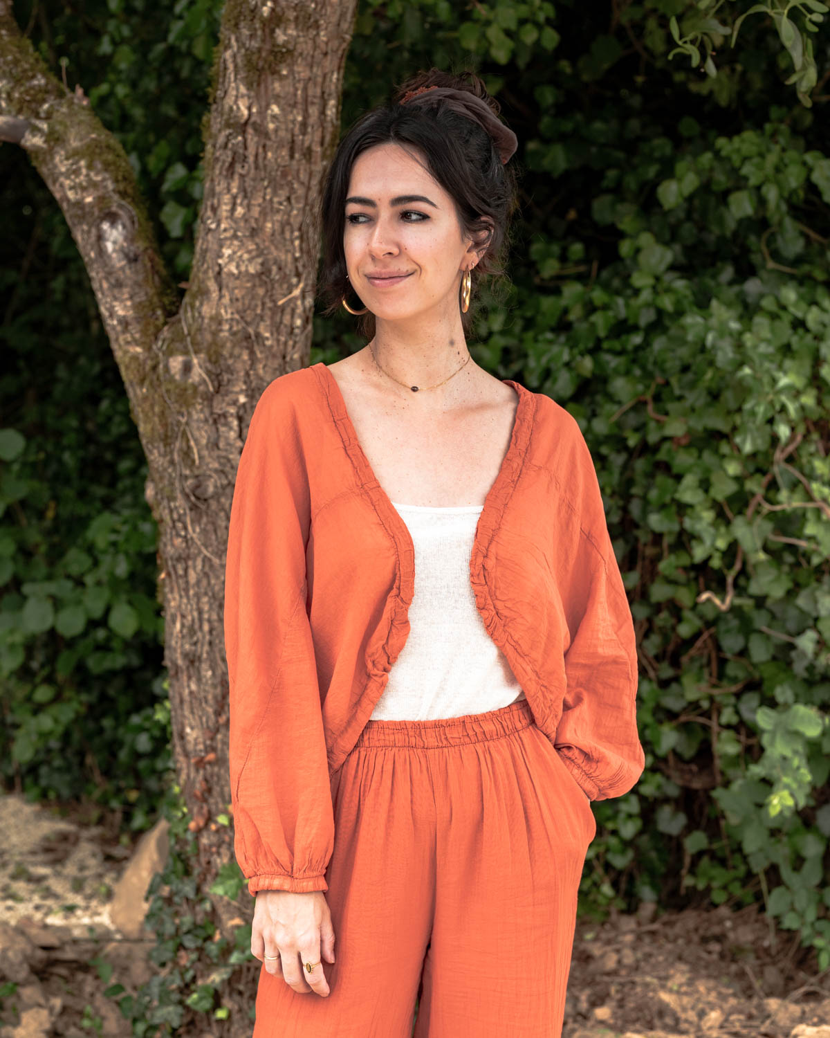 Boho Vestje “Solea” – Terracotta Katoen met Aantrekkoord en Ruches