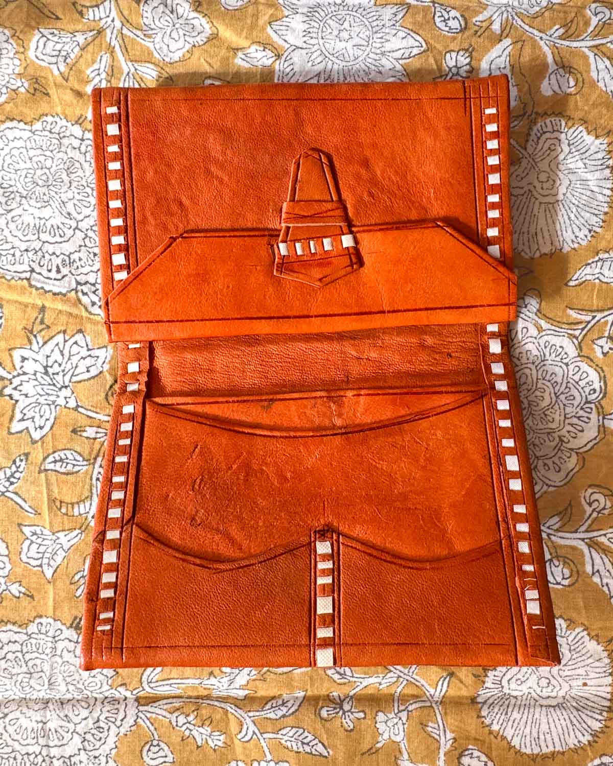 • Oranjebruine handgestikte portemonnee van soepel kamelenleer – stijlvol en praktisch