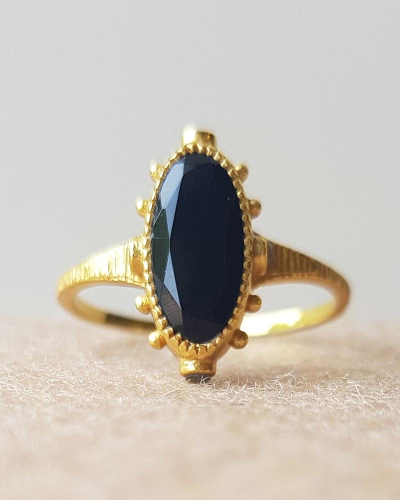 vergulde ring met zwarte onyx